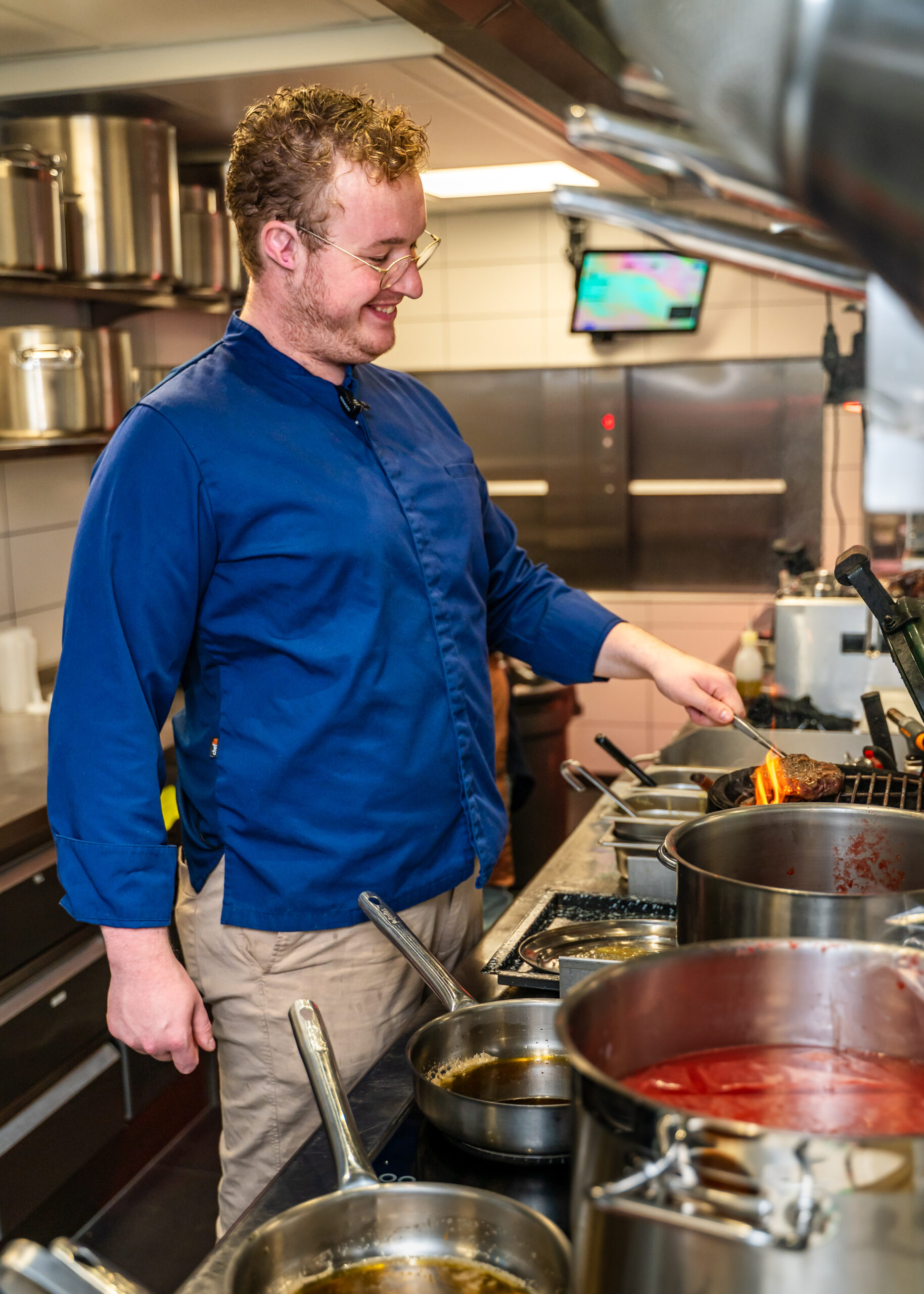 bediening en eerlijke, verfijnde gerechten. Het restaurant is fraai ingericht met een knipoog naar de jaren ’30. De ambiance is hier aangenaam, verre van stijf en afstandelijk. Bij Suus staat genieten centraal en aan alle voorwaarden daarvoor is voldaan”, vindt restaurantmanager Kaj Velleman. Chefkok Kyan van Bommel staat garant voor de kwaliteit van de gerechten: “Lekker eten brengt mensen tot elkaar. Dat concept achter restaurant Suus is zó inspirerend. Elke dag opnieuw heeft de keukenbrigade er zin in om fantastisch te koken en de gasten te verwennen. We houden de kaart overzichtelijk en de prijzen vriendelijk. Dat is een uitdaging, maar wel een hele leuke. En die ga ik dus graag aan.”